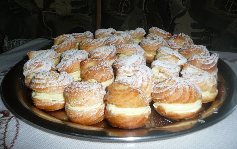 Vodu a olej smícháme a dáme vařit , když směs začne vařit , postupně přidáváme mouku . Za stálého míchání odpalujeme tak dlouho ,až je těsto hladké a nechytá se na vařečku ani nádobu. Do vychladlého těsta vmícháme vejce vždy jedno po druhém . Hmotou plníme sáček a na vymazaný plech stříkáme věnečky. Po upečení je rozkojíme , naplníme krémem .